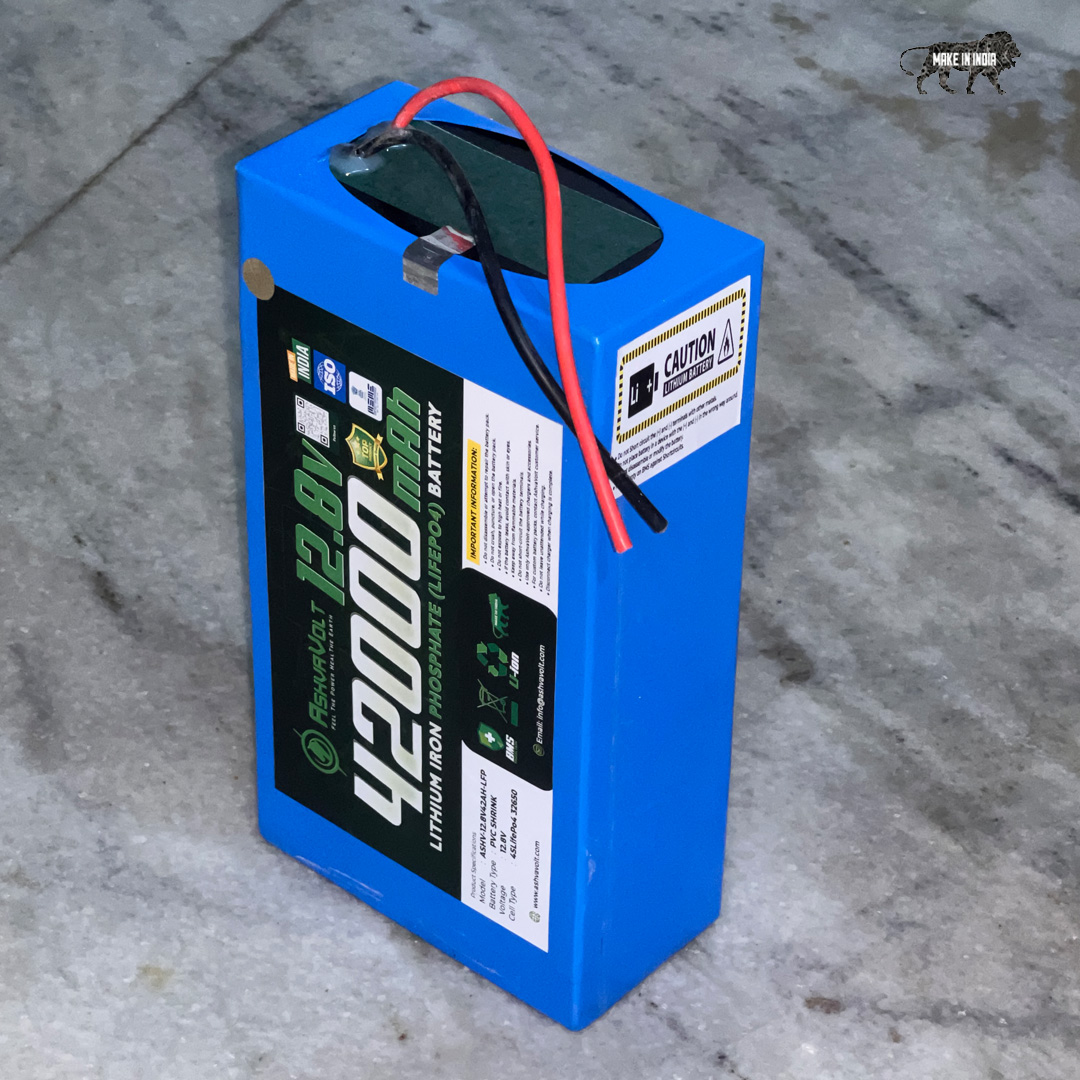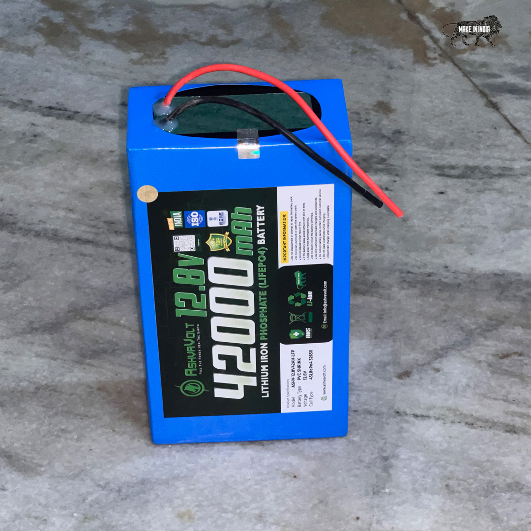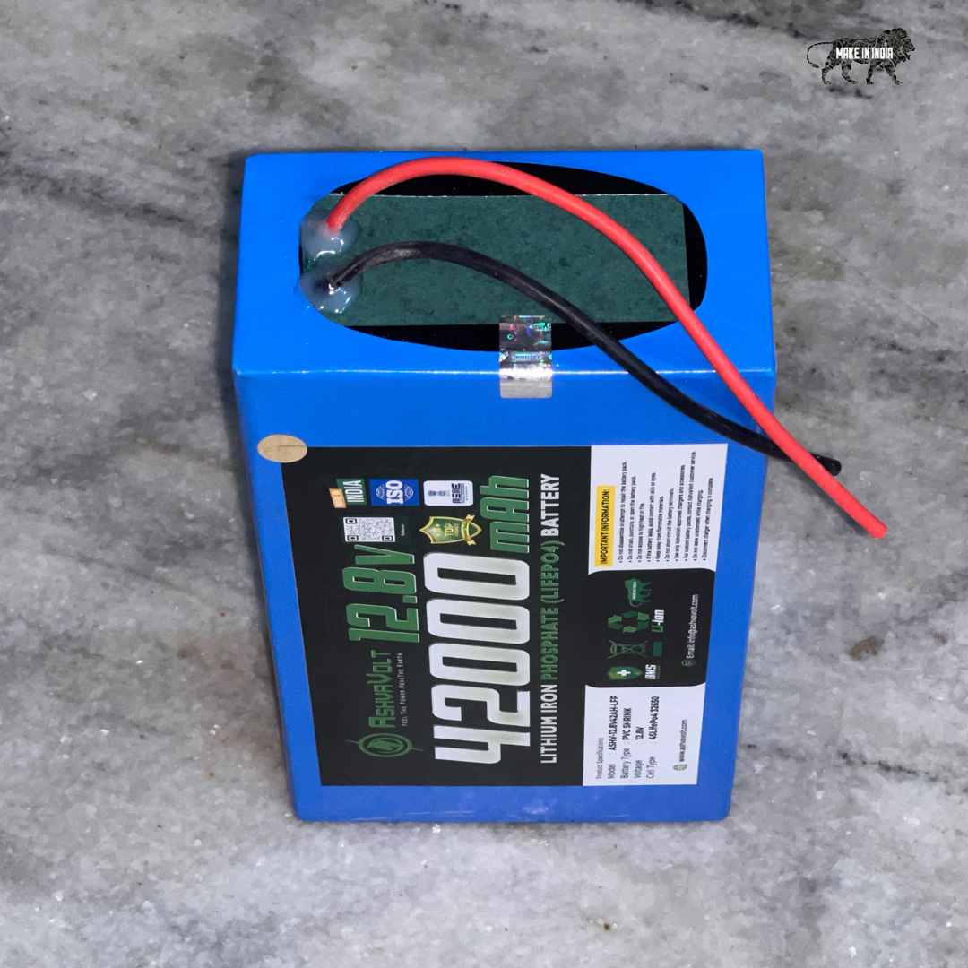 AshvaVolt® 12.8V 42Ah 537.6 watt Lithium Iron Phosphate Solar, E-Bike, EV, Toto Battery with BMS protection and 2 years warranty | 12v 42000mAh LifePo4 Battery
