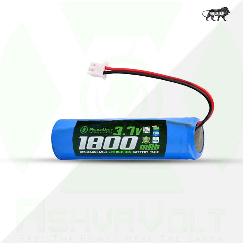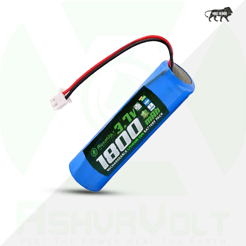 AshvaVolt® 3.7V 1800mAh 18650 Rechargeable Lithium Battery Pack with 1S 1P BMS Protection, Over-discharge and Short-Circuit Protection