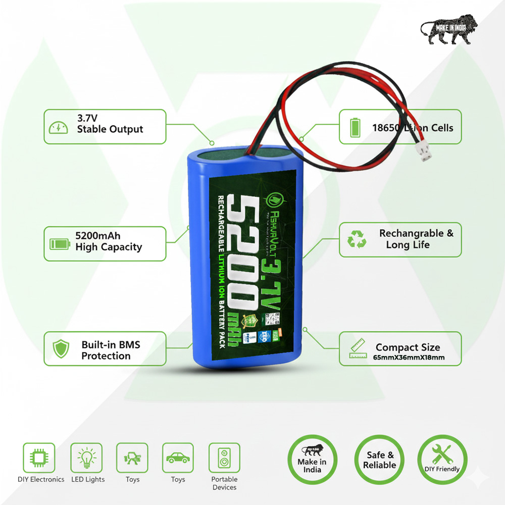 The ASHVAVOLT 18650 1800mAh 3.7V Rechargeable Lithium-Ion Battery is a compact, high-performance single-cell power solution designed for applications requiring stable 3.7–3.76V output with high energy density. Built for reliability and efficiency, this battery delivers consistent power for a wide range of electronic and portable devices.